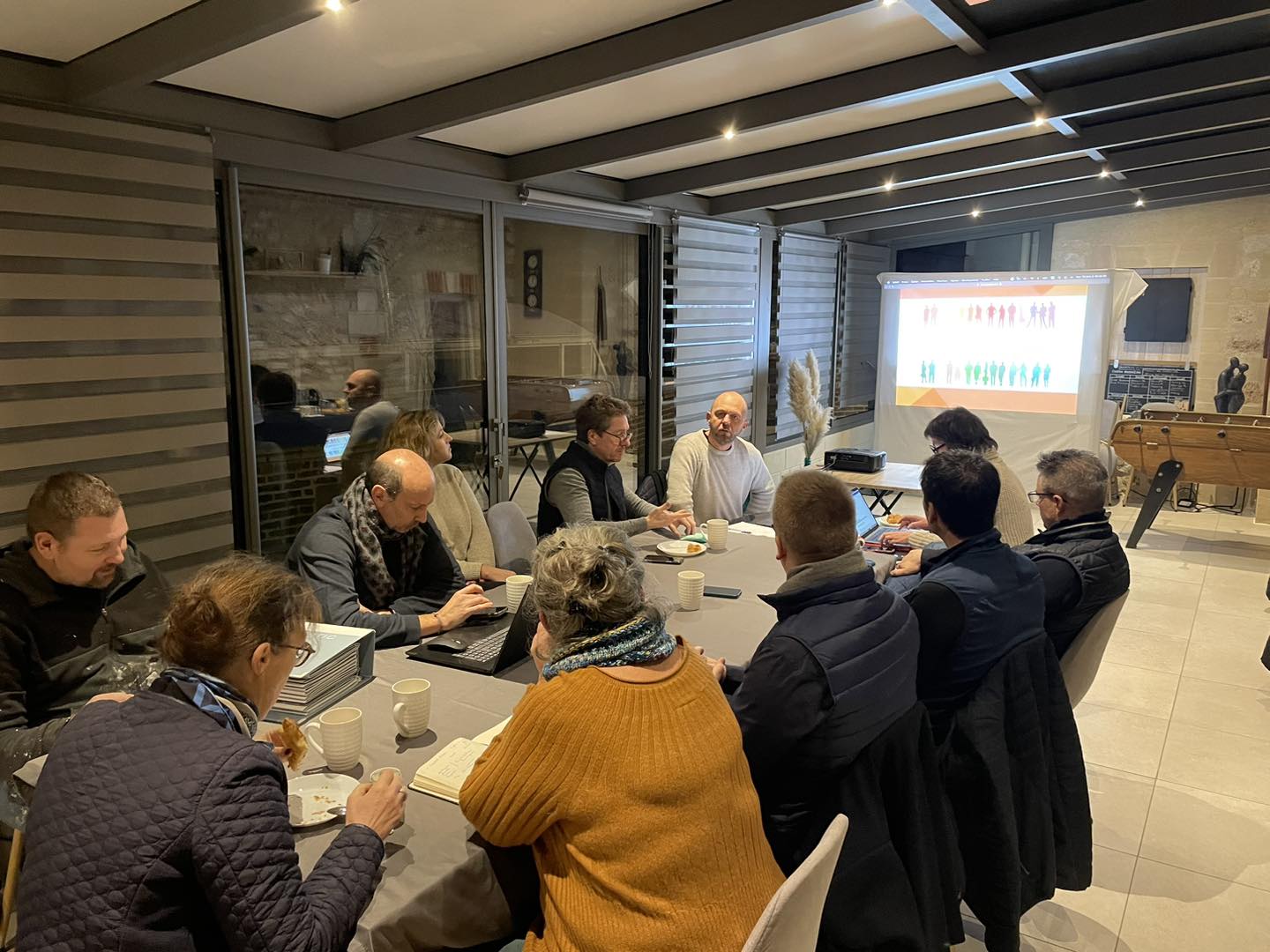 La sphère Bâtiment (maîtrise d’œuvre, peinture, électricité, maçonnerie, couverture, décapage…) est ainsi particulièrement dynamique dans le groupe puisque les membres, sachant qu’ils peuvent compter les uns sur les autres n’hésitent pas à se faire travailler les uns les autres.)